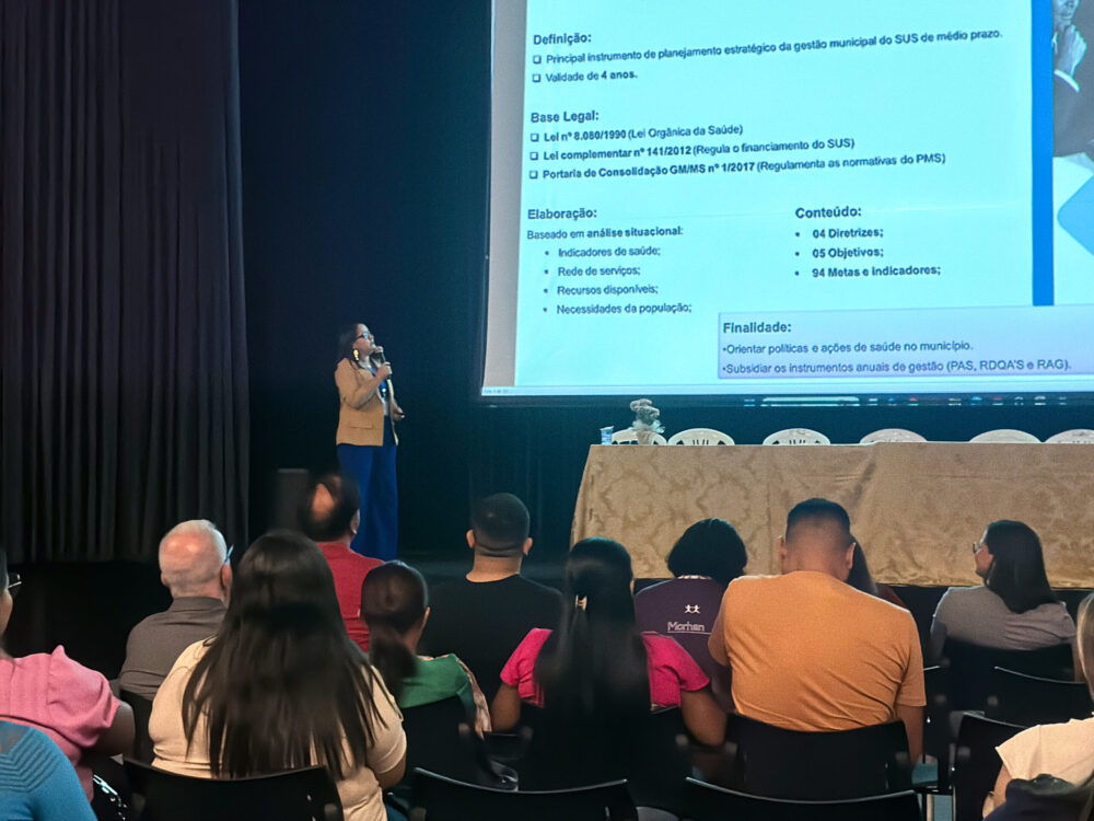 A programação contou com uma palestra magna sobre os novos indicadores da Atenção Primária à Saúde, ministrada pela assessora de Políticas de Atenção Integral à Saúde da Secretaria de Estado de Saúde Pública, Cléa Calandrine.